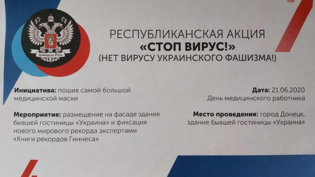 Ресурс отмечает, что 21 июня в День медика «власти ДНР» решили провести «республиканскую акцию» под названием «Стоп вирусу"/"нет вирусу украинского фашизма"/. Телеграмм-канал пишет: