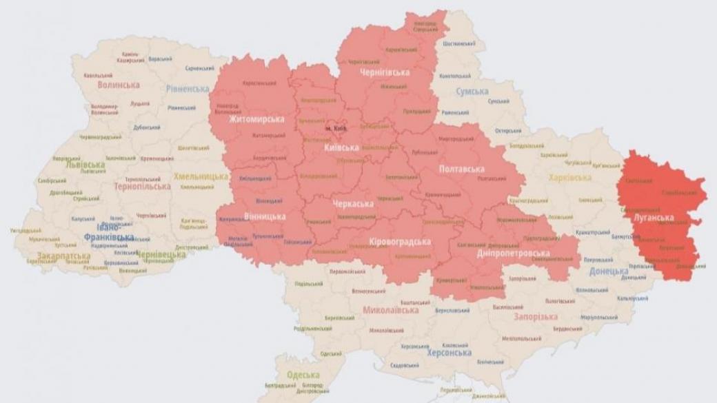 В Киеве, Черкасской, Полтавской, Кировоградской, Днепропетровской, Винницкой и Житомирской областях объявлена воздушная тревога. Жителей городов призывают укрыться в убежищах.