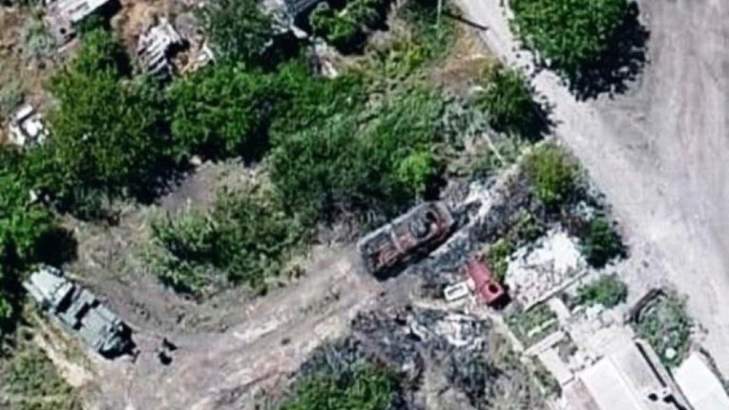 Рымарук показал фото с беспилотника до и после взрыва, на котором четко видно одну сгоревшую БМП.