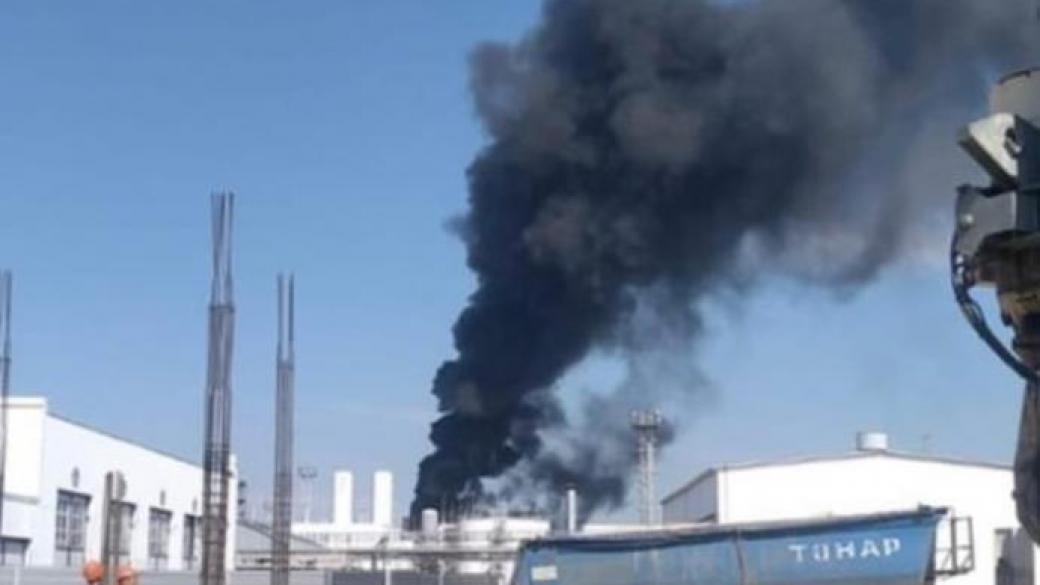 Российские паблики публикуют кадры возможного удара по нефтеперерабатывающему заводу в Ростовской области.