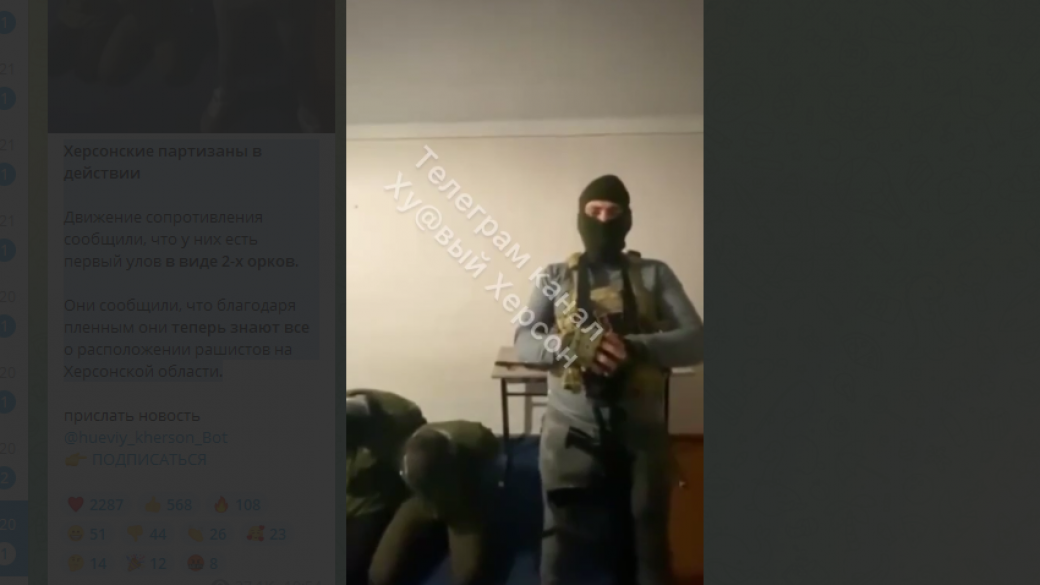 В захваченном военными РФ Херсоне местные партизаны взяли в плен 2-х военных РФ. Об этом сообщают местные Телеграмм-каналы, которые публикуют обращение партизан к армии РФ.