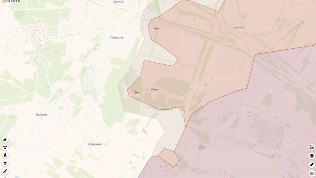 В Донецкой области, на торецком направлении, россияне захватили село Шумы и продвинулись в районе поселка Северное. Об этом сообщил украинский информационный ресурс DeepState, который вчера, 21 июня, в 21:45 обновил свои интерактивные карты.