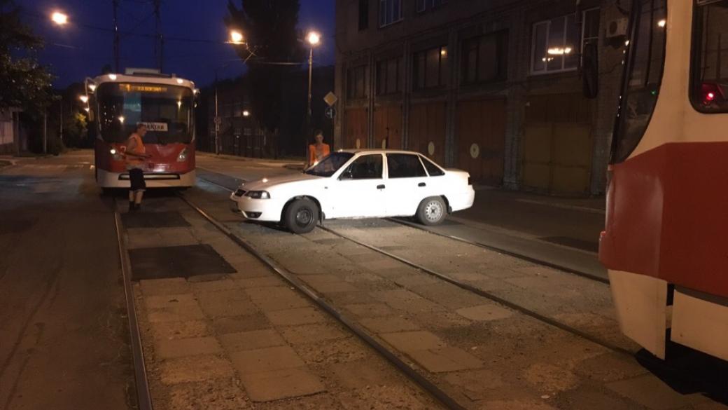 В неподконтрольном Украине Донецке неизвестный водитель бросил легковой автомобиль на трамвайных путях, преградив путь трамваям. Об этом сообщают местные жители в соцсети и опубликовали соответствующие фото.