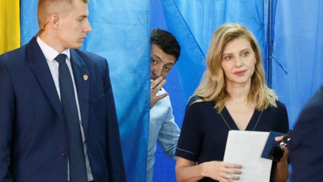 В сети появился забавный снимок президента Украины Владимира Зеленского выходящего из кабинки для голосования во время внеочередных выборов в Раду.