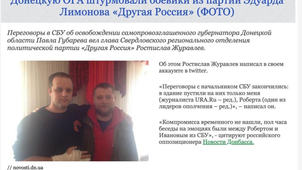 Убитый сегодня в Украине так называемый российский военкор Ростислав Журавлев с первых дней марта 2014 года разжигал в ныне неподконтрольном Украине Донецке войну и вместе с "народном губернатором Донбасса" Павлом Губаревым штурмовал Донецкую ОГА, после чего убивал и грабил жителей Донбасса в составе одной из НВФ "ЛНР". Об этом в своем Телеграмм-канале сообщил украинский блогер и журналист Денис Казанский.