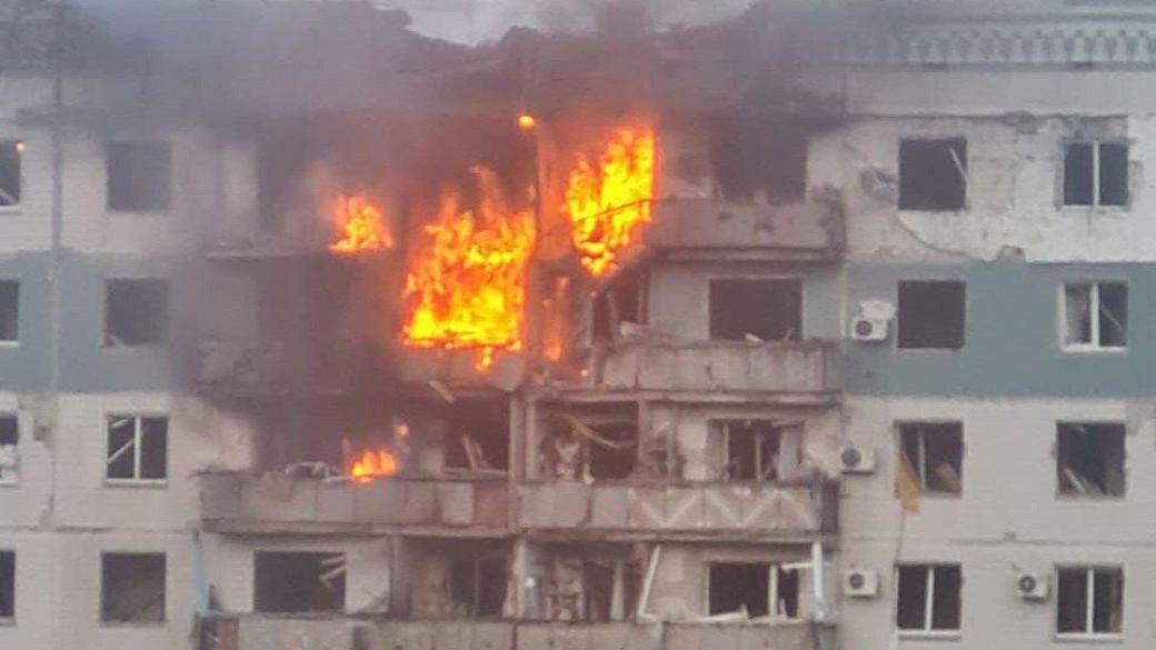 Произошло попадание в многоквартирный жилой дом, на месте сразу возник пожар.