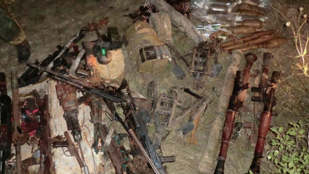 В Светлодарске Донецкой области силы ОС обнаружили схрон с оружием и атрибутикой боевиков «ДНР».
