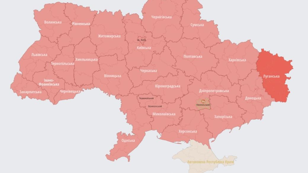 На большей части территории Украины объявлена воздушная тревога! Будьте осторожны!