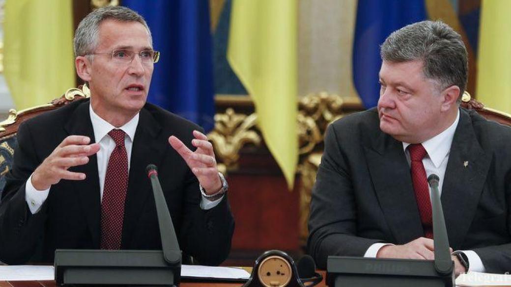 Во время встречи с Президентом Украины, Столтенберг сообщил: «Президент Петр Порошенко провел переговоры с Генеральным секретарем НАТО Йенсом Столтенбергом».