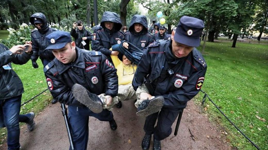Правоохранители задержали после акции трех человек, которые пытались провести одиночные пикеты в Александровском саду.