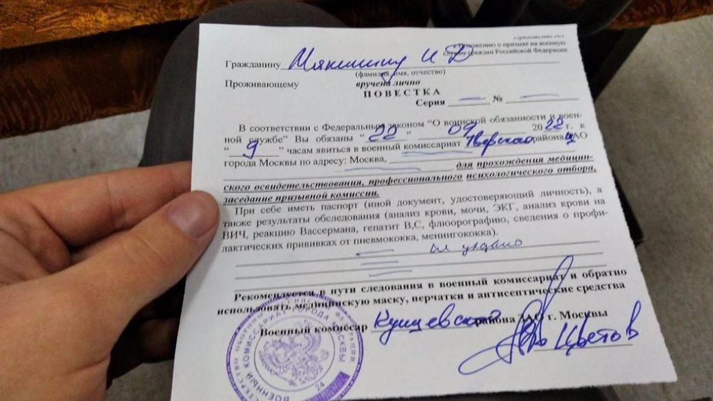 В России задержанным на акциях против мобилизации мужчинам вручили повестки. Об этом сообщают российские паблики.