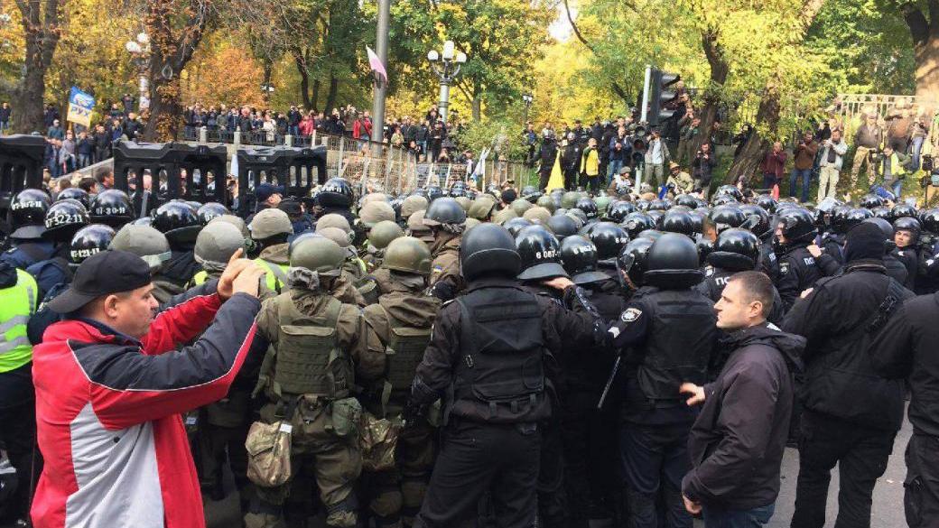 Сегодня под зданием Верховной Рады участники акции протеста пытались прорвать кордон полиции.