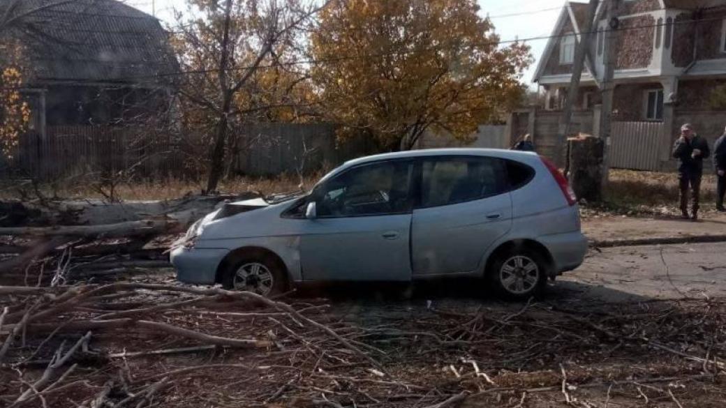 В Пролетарском районе неподконтрольного Украине Донецка на ул. Можайской дерево упало на легковой автомобиль и перегородило проезжую часть. Об этом сообщают очевидцы в социальных сетях.
