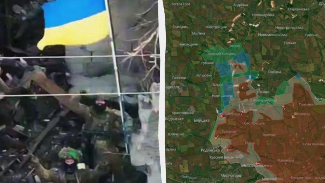 Военнослужащие 132-го разведывательного батальона Десантно-штурмовых войск на видео поднимают украинский флаг над Кучеровым Яром.