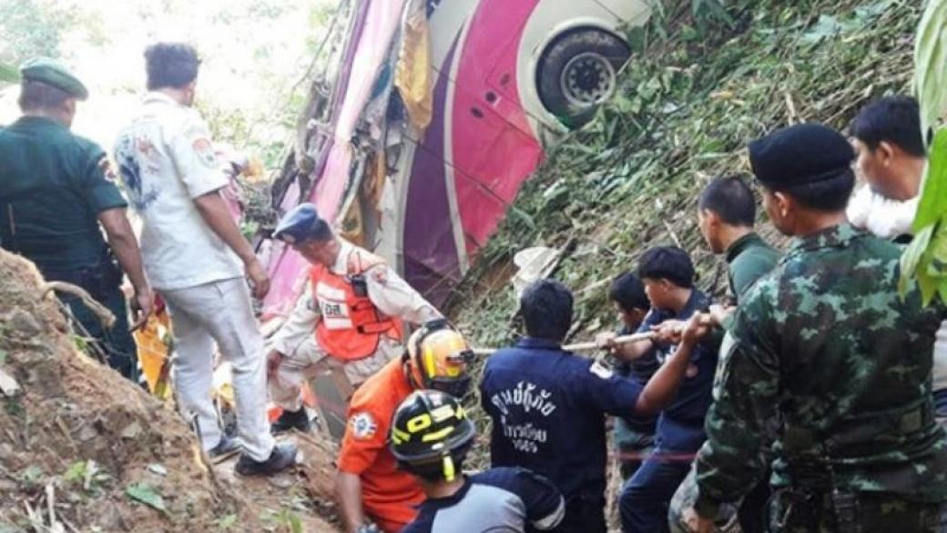 В Таиланде туристический автобус, в котором ехали 36 пенсионеров, на склоне холма съехал с дороги и упал в 70-метровый овраг, в результате чего 18 человек погибли и 20 получили травмы.