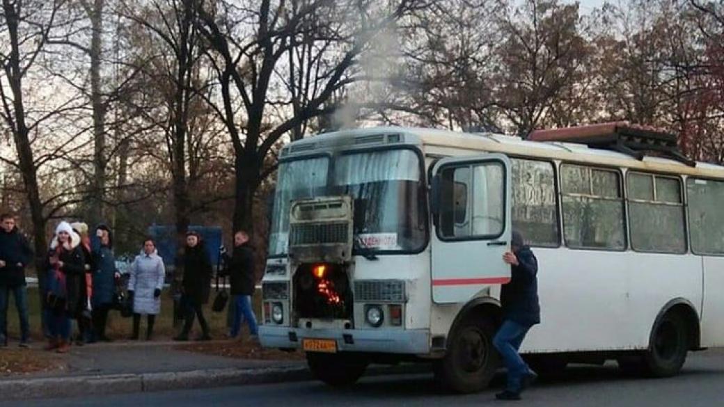 Инцидент произошел с автобусом маршрута № 20. На фото видно, что у автобуса загорелся мотор.