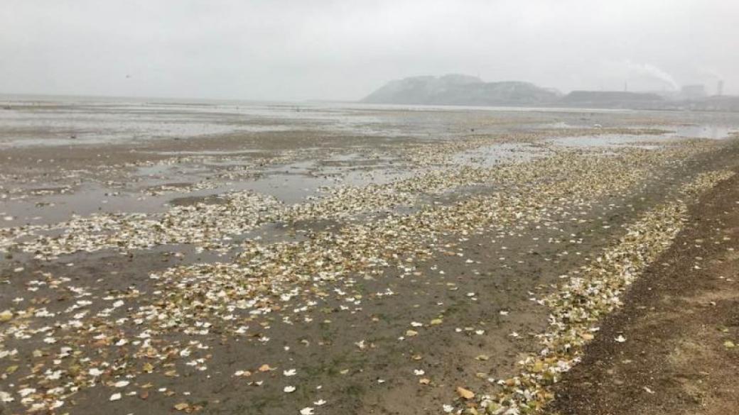По сообщениям местных жителей в соцсетях, на Левом берегу Мариуполя море отошло от берегов и оголило дно Азовского моря.