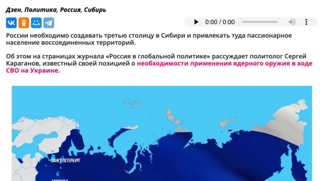 Русский политолог Сергей Караганов призвал создать "третью столицу россии" в Сибири и переселять туда жителей оккупированных украинских территорий. Об этом он рассуждает в российском журнале «Россия в глобальной политике».