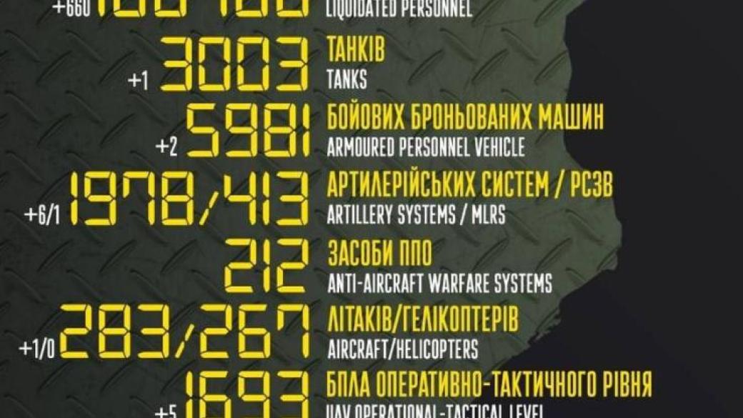 личного состава ‒ около/ about 100400 (+660) человек ликвидировано,