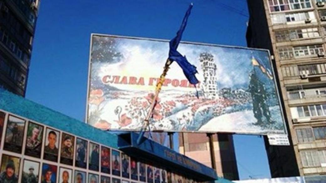 В Кривом Роге на Днепропетровщине неизвестные второй раз за месяц подожгли государственный флаг, который установлен возле памятной доски погибшим бойцам в зоне АТО.