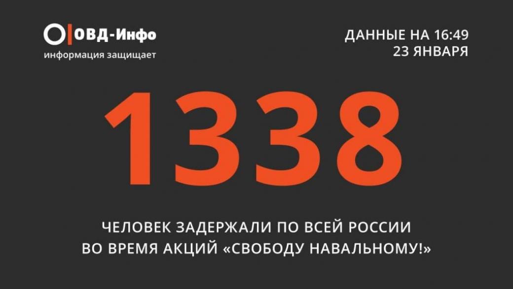 По данным на 16:00 сегодня, 23 января, в России были задержаны свыше 1000 человек.