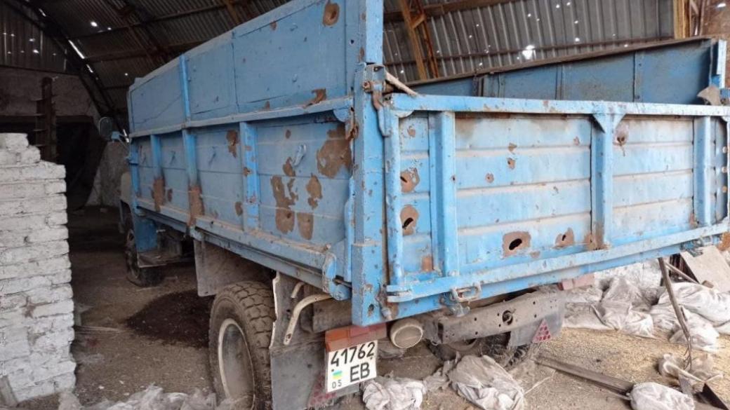 При обстреле 120 мм арт снарядами в количестве 6 штук в период с 11.30 до 12.00 22.02.2022 по направлению Байрак — по направлению Новолуганское на окраине н.п. Майское. При обстреле повреждена 2 единицы сельскохозяйственной техники, ангар, есть воронки возле ангара.