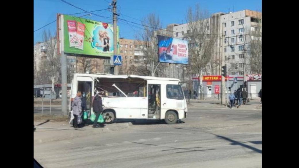 «Автобус не пропустил военную технику и нанизался на дуло, вошло в бок, вышло с крыши. Женщине с салона автобуса оказывали помощь, больше пострадавших не видела».