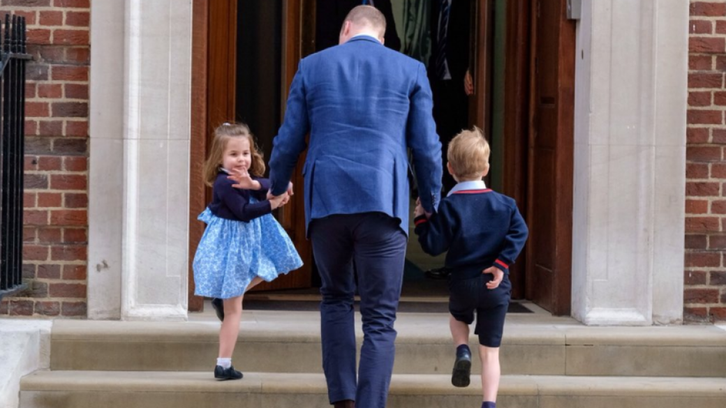 Британский принц Уильям привез своих детей, 4-летнего принца Джорджа и 2-летнюю принцессу Шарлотту, в больницу St Mary"s Hospital в центре Лондона, чтобы познакомиться с новорожденным младшим братом.