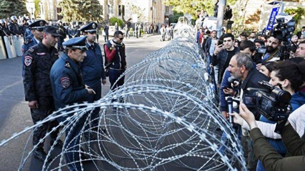 Вчера же очередное шествие оппозиции, протестующей против избрания премьером экс-президента страны Сержа Саргсяна, было остановлено в ереванском районе Эребуни. При этом полиция применила спецсредства. Ранее состоялись переговоры между лидером оппозиции Николом Пашиняном и Саргсяном, которые продлились три минуты и закончились безрезультатно.