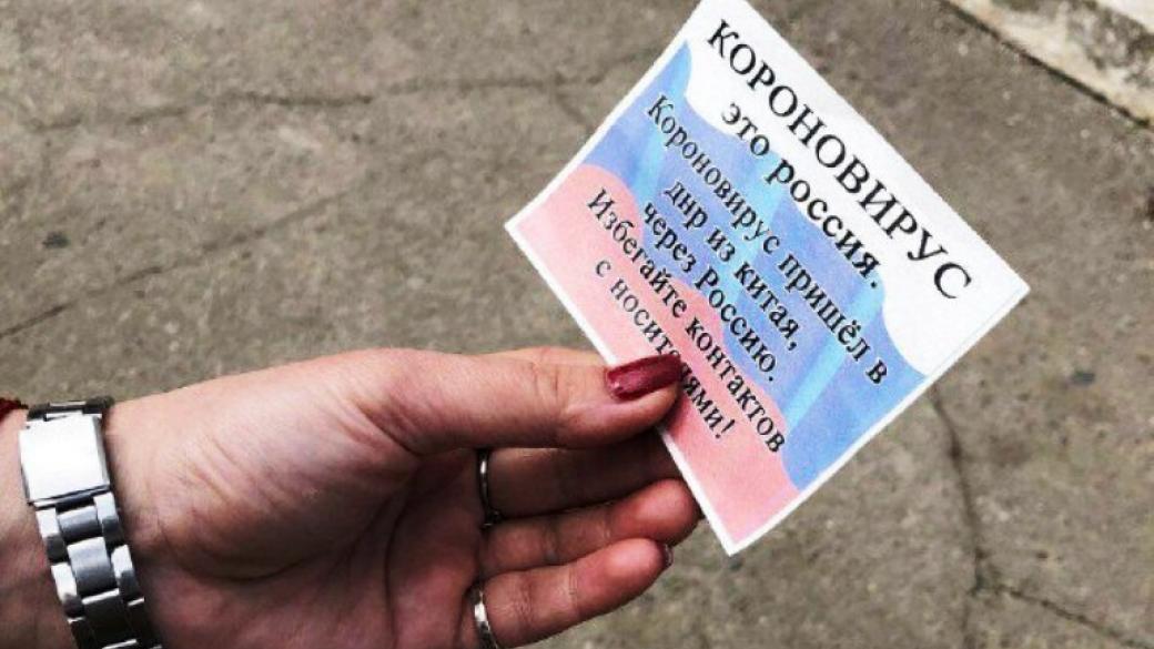 В тексте листовки сказано, что «Коронавирус — это Россия. Коронавирус пришел в ДНР из Китая через Россию, избегайте контактов с носителями». Кто распространил эти листовки в Донецке не сообщается.