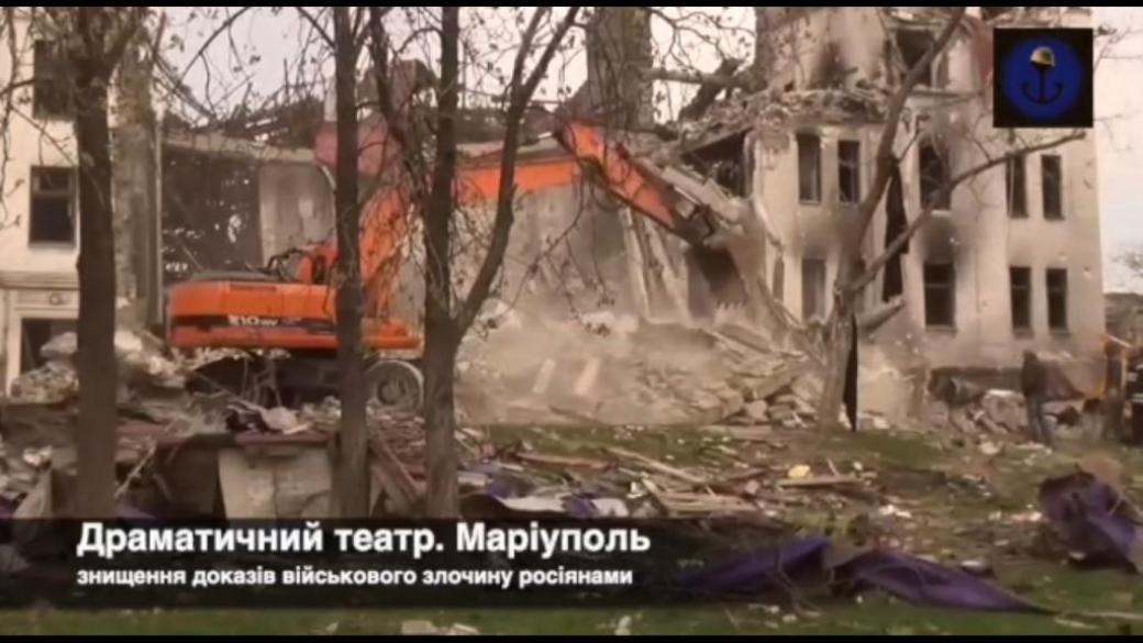 Оккупанты проводят «зачистку» завалов Драмтеатра в Мариуполе: тела погибших упаковывают в пластиковые мешки и вывозят в Мангуш.