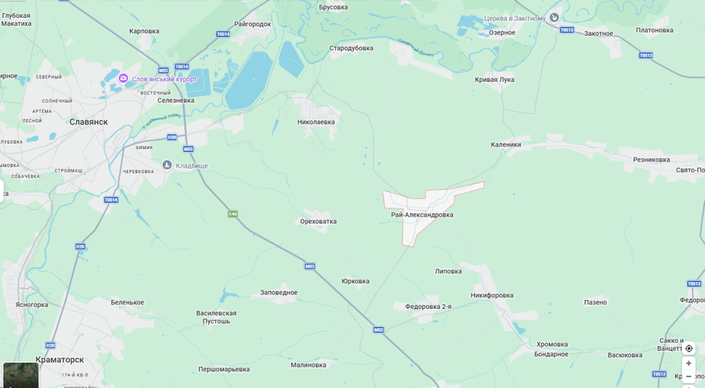 Расстояние от Рай-Александровки до Славянска напрямую составляет 17 км.
