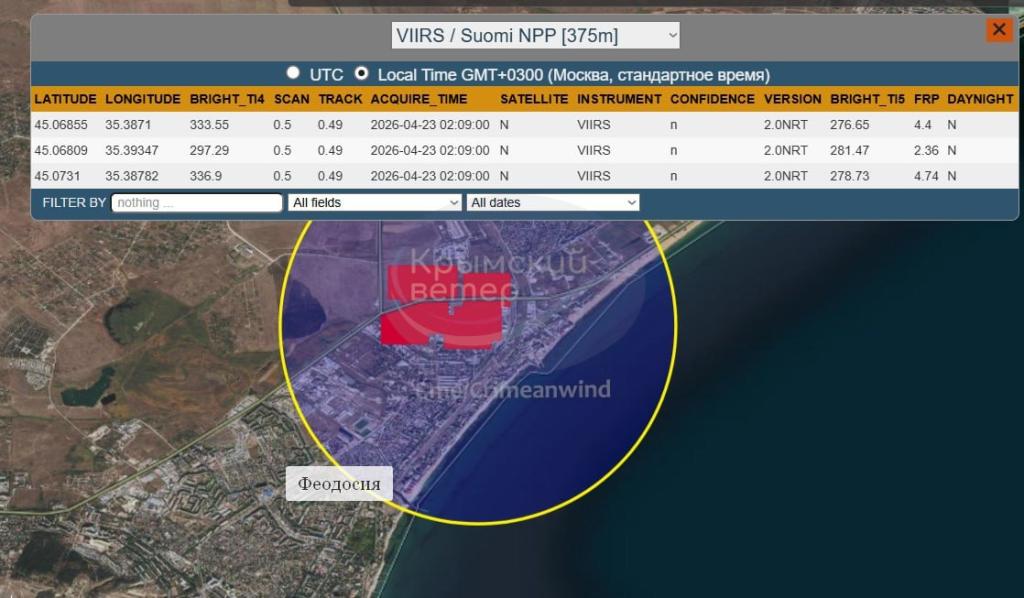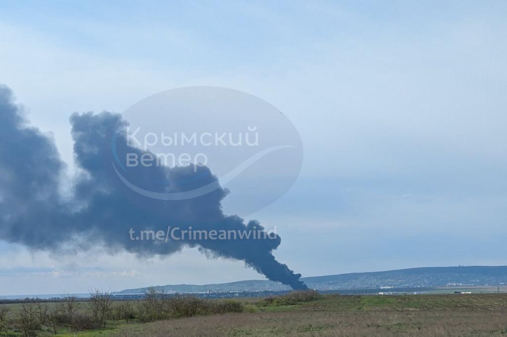 В ночь на 23 апреля ударные дроны атаковали нефтебазу в Феодосии во временно оккупированном Крыму. Об этом сообщает мониторинговый Telegram-канал Exilenova+, пишет Обозреватель.