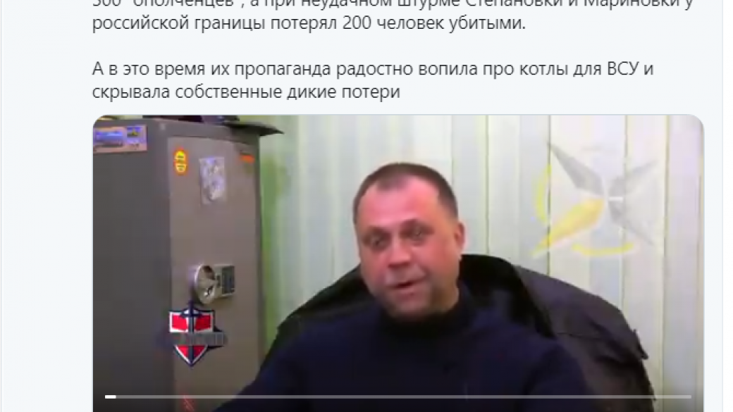 «Вот там, в Степановке и Мариновке (в Мариновке в основном) мы потеряли, так и не пробив коридоры к границе, почти 200 человек убитыми. Почему о них никто не вспоминает? Или почему никто не вспоминает о том, как Стрелков, „гениальный полководец“, угробил в районе Северского Донца 500 ополченцев».