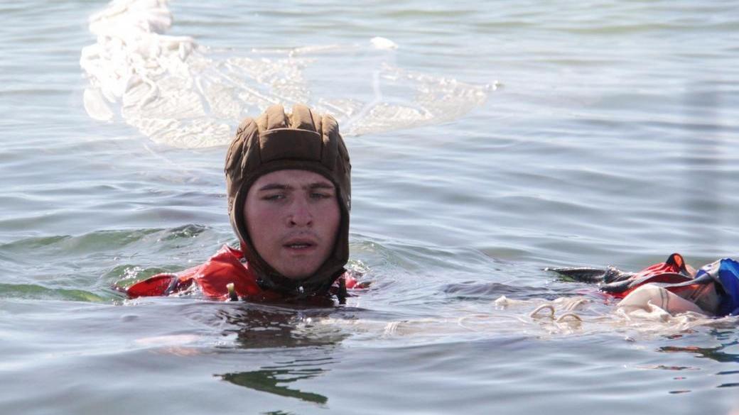 Прыжок в воду от традиционного приземления на землю отличается тем, что бойцу при выполнении такого прыжка необходимо освободиться от подвесной системы непосредственно перед тем, как спуститься на воду.
