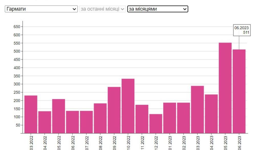По его словам, в июне уже уничтожено 511 российских стволов и 10 вертолётов (+1 этим утром, график не обновили)