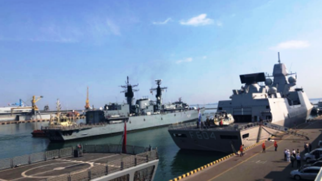 Пресс-служба ВМС ВСУ сообщает, что прибывшие корабли входят в состав военно-морской группы НАТО № 2 (SNMG2) и постоянной противоминной военно-морской группы НАТО № 2 (SNMCMG2). По информации, в порту пришвартовались фрегат «De Ruyter» Королевских ВМС Нидерландов, фрегат «Fatih» и минный тральщик «Аnamur» ВМС Турции, вспомогательное судно «Rhein» ВМС ФРГ, фрегат «Regele Ferdinand» и минный тральщик «Lupu Dinescu» МС Румынии.