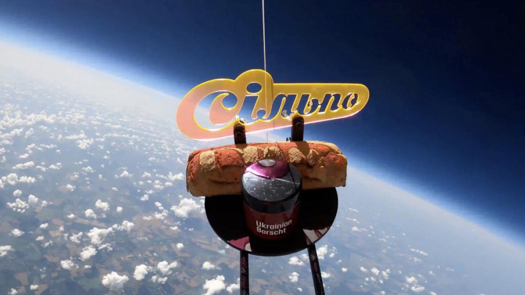 Сеть украинских супермаркетов «Сільпо» запустила в стратосферу борщ и гречневый багет, о чем написала и разместила видео на своей странице в Facebook.