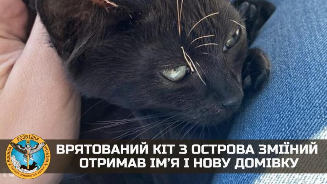 Спасенный кот с острова Змеиный получил имя и новый дом. Об этом рассказали представители ГУР МО Украины.