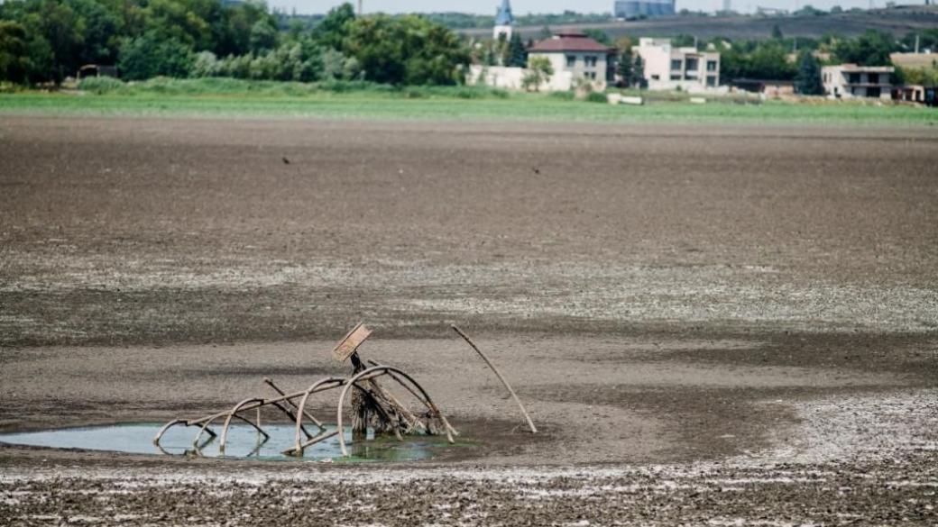 Это Ханженковское водохранилище, ранее питающее города в "днр" водой, на сегодняшний день полностью обмелело. Аналогичная ситуация сложилась и в других водохранилищах региона из-за чего возникла нехватка воды для населения и промышленности.