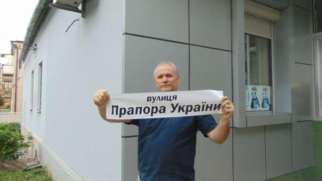 Активист Владимир Березин напомнил, что именно на этой улице в 1917 году впервые над Донбассом был поднят желто-синий флаг.