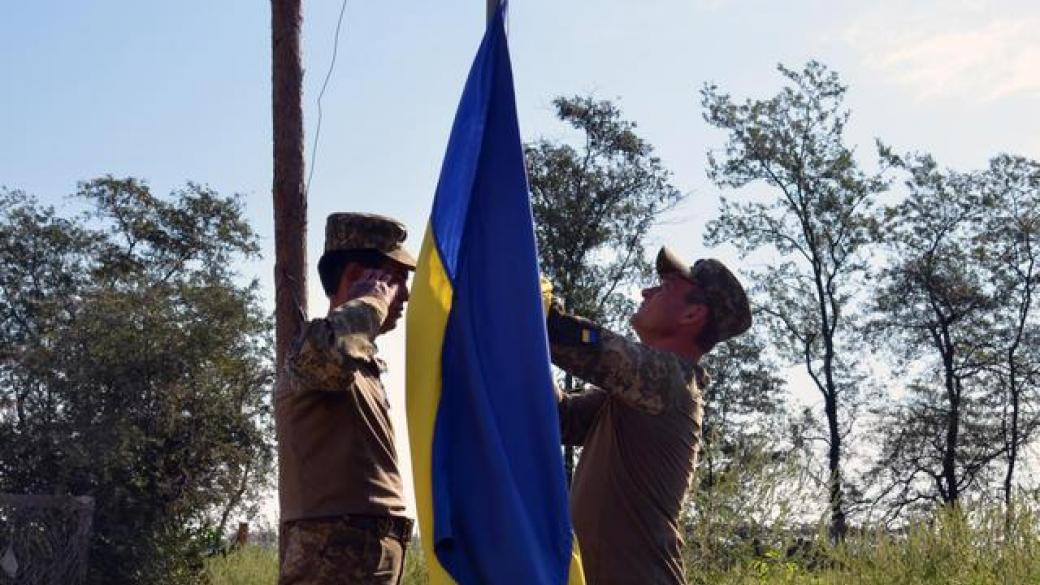 В честь Дня Государственного Флага Украины в воинских частях и подразделениях, в зоне АТО на Донецком направлении состоялись торжественные церемонии поднятия Государственного Флага.