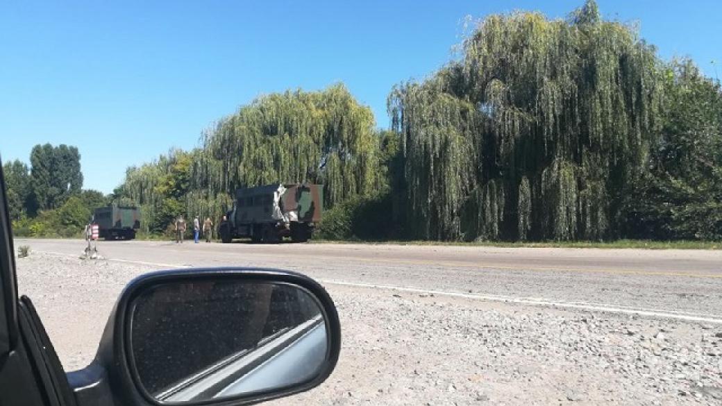 Очевидцы опубликовали фото и отметили: «Колонна Нацгвардии ДТП, одна машина догнала другую, в нее врезалась конвойная. Без потерпевших».