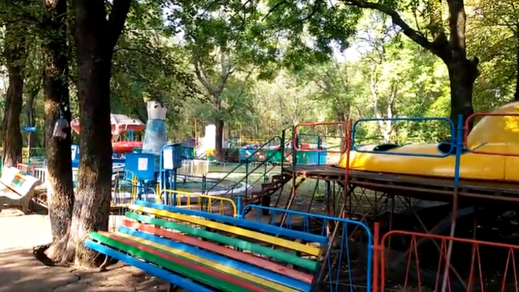 При этом парк выглядит безлюдным — на качелях никто не катается, из посетителей заметна всего несколько человек. Однако, территория чистая.