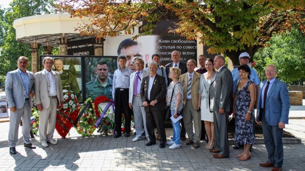 Сегодня в неподконтрольном Украине Донецке представители местной «власти» вместе с членами российской «делегации» возложили цветы к «мемориальному камню», установленному на месте убийства экс-главаря ОРДО Александру Захарченко. Об этом сообщают подконтрольные ОРДО СМИ,