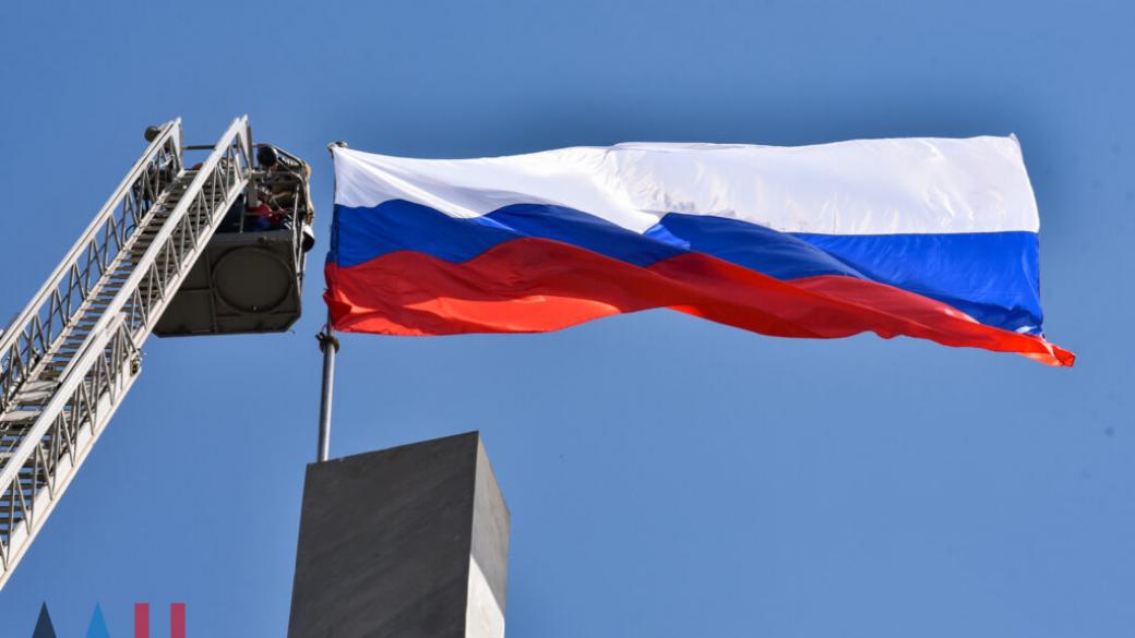 В центре неподконтрольного Украине Донецка на площади Ленина по случаю Дня Государственного флага РФ сменили российский флаг на такой же, но большего размера. Об этом сообщают подконтрольные ОРДО СМИ.