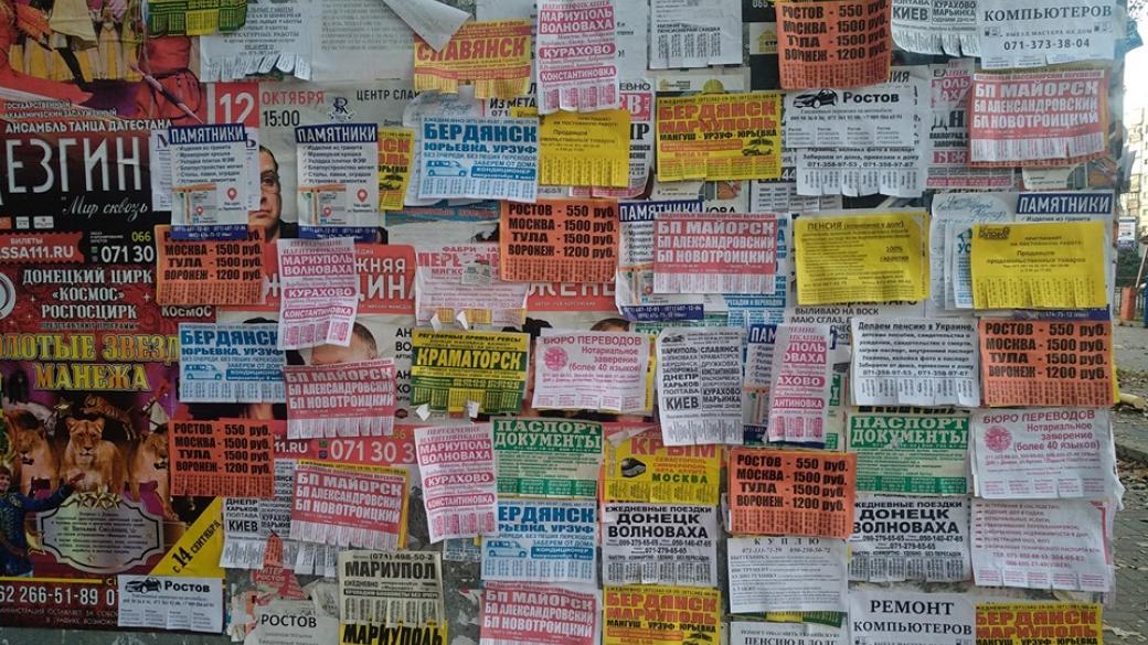 Она опубликовала фото доски объявлений на одной из улиц в Донецке, где есть масса предложений перевозчиков о рейсах из ОРДЛО в Россию и украинские города и отметила, что люди бегут из «республики» и добавили: