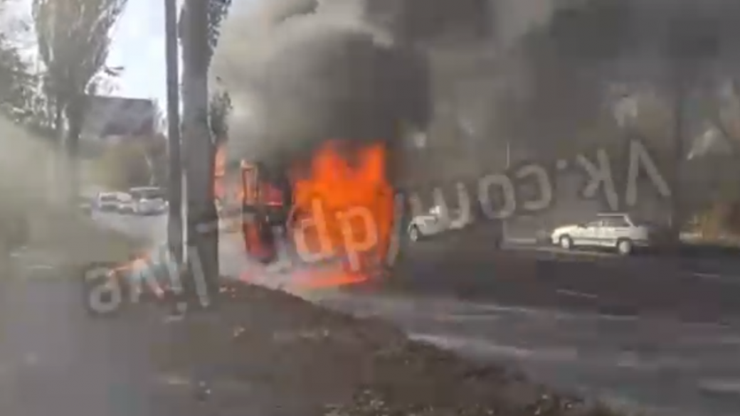 В неподконтрольной Украине Макеевке на улице Батова загорелся автобус маршрута № 121. Об этом сообщают очевидцы с места происшествия.