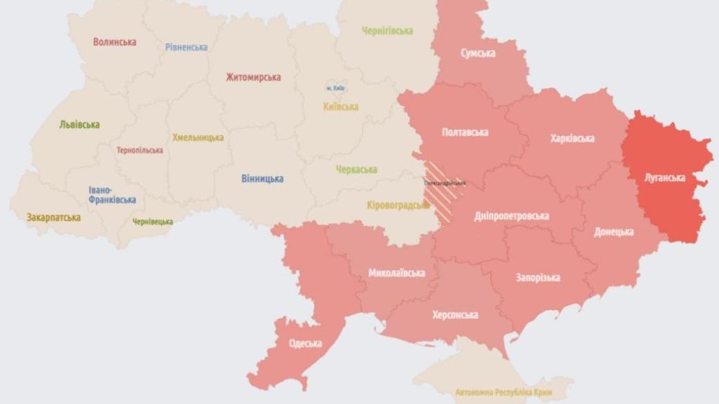 Почти по всей Украине объявлена воздушная тревога. Угроза ракетного удара