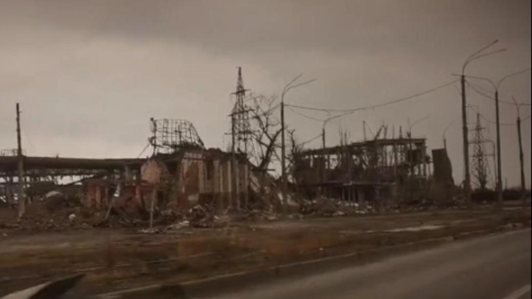 "На самом деле Азовсталь выглядит так. Дорога, которая накануне войны была полностью отремонтирована - сейчас дорога воинской славы Гарнизона Мариуполя и последствий россии. Без лишних слов. Просто реалии сейчас. Развалины. Воронки от взрывов. Сожженная российская техника. Разрушенный мост. Замедленный трафик. Зона заброшенной жизни".